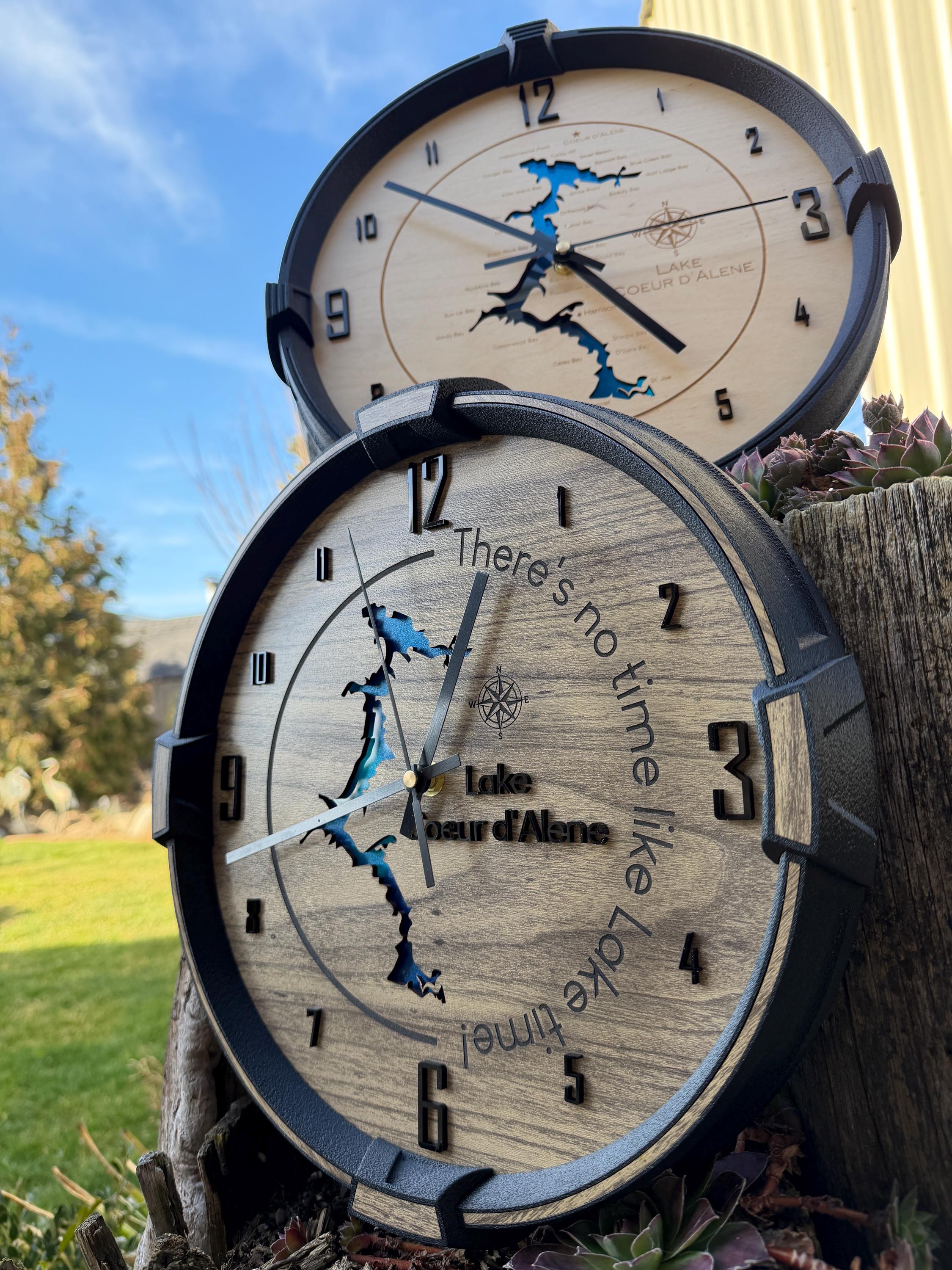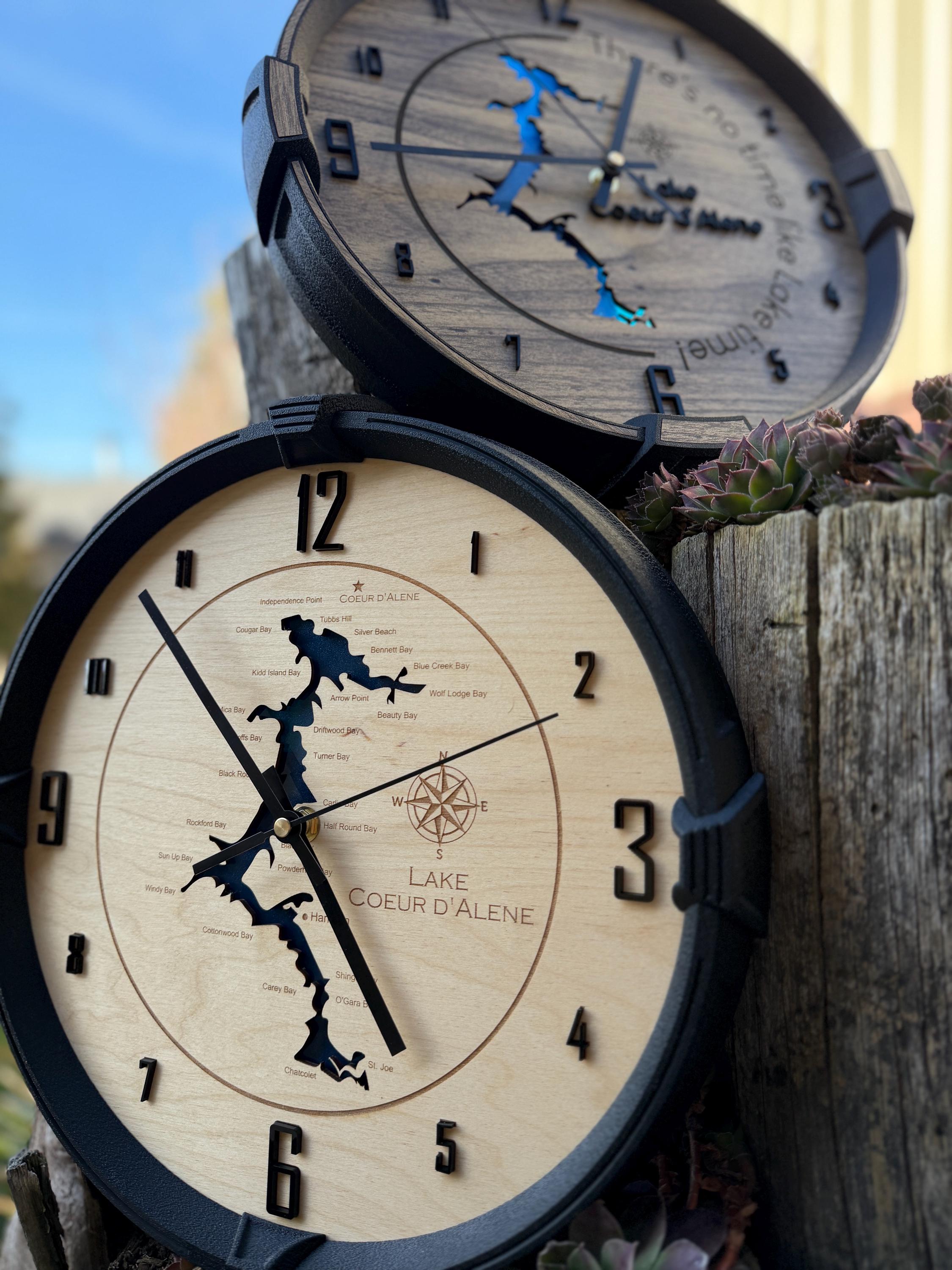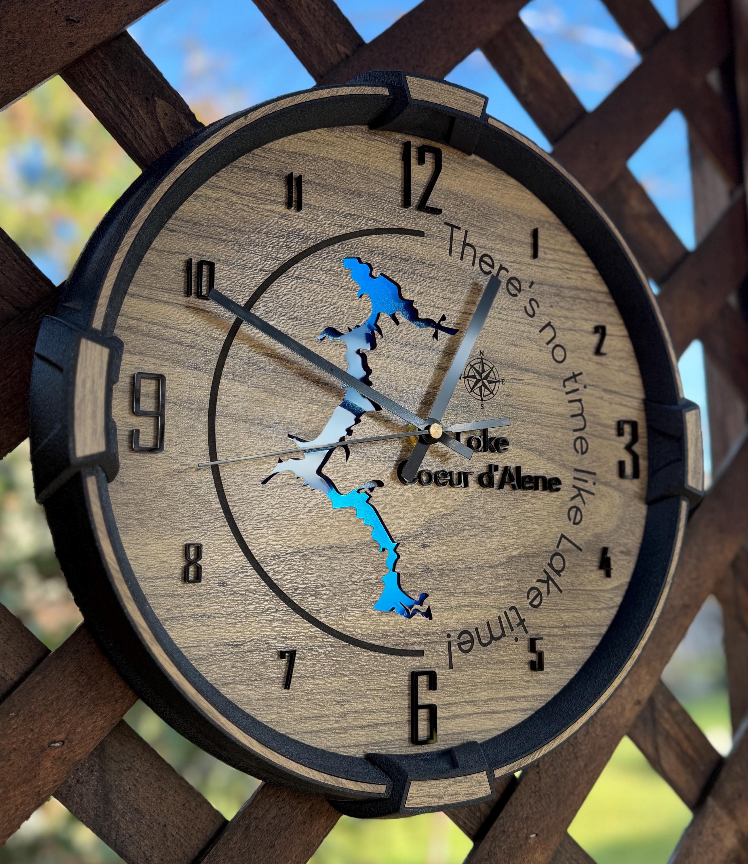 These custom wall clocks are designed and crafted in our North Idaho studio and personalized with your company logo, brand, or design. Whether you’re decorating your office, upgrading your shop wall, or gifting a client, this clock makes a bold and professional statement.