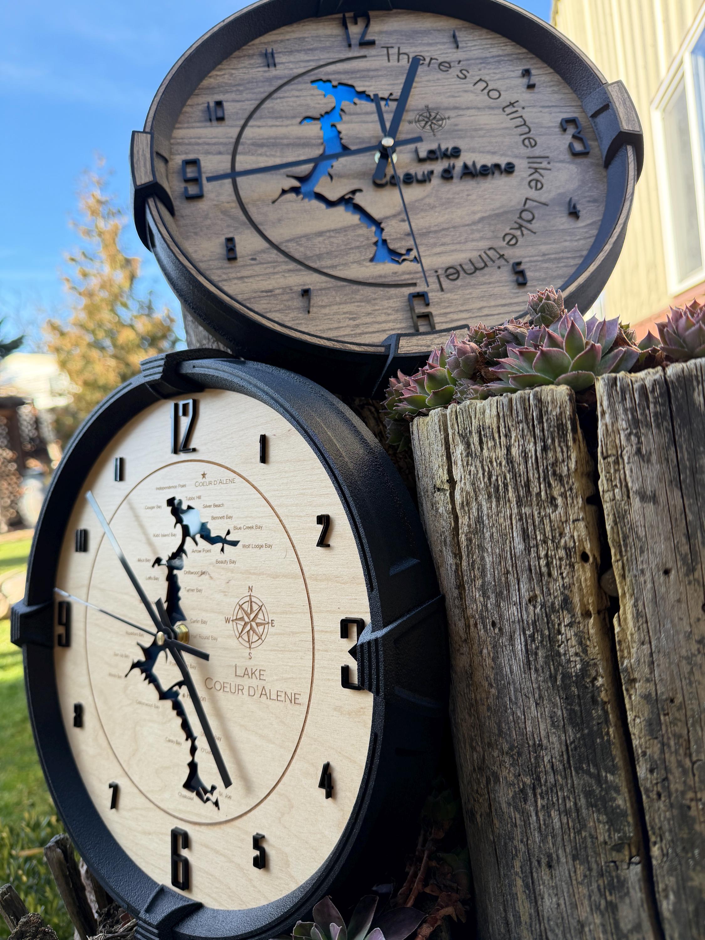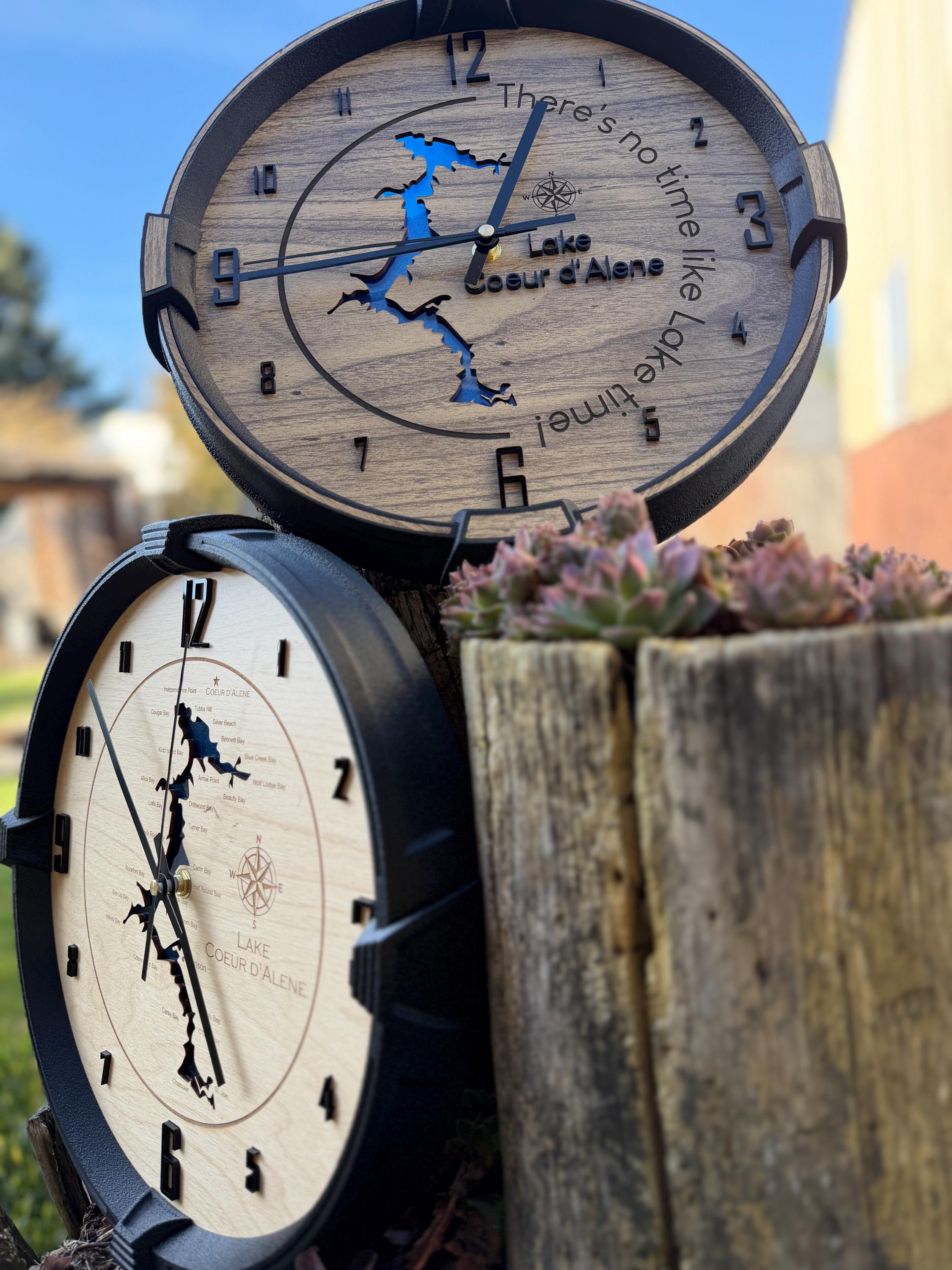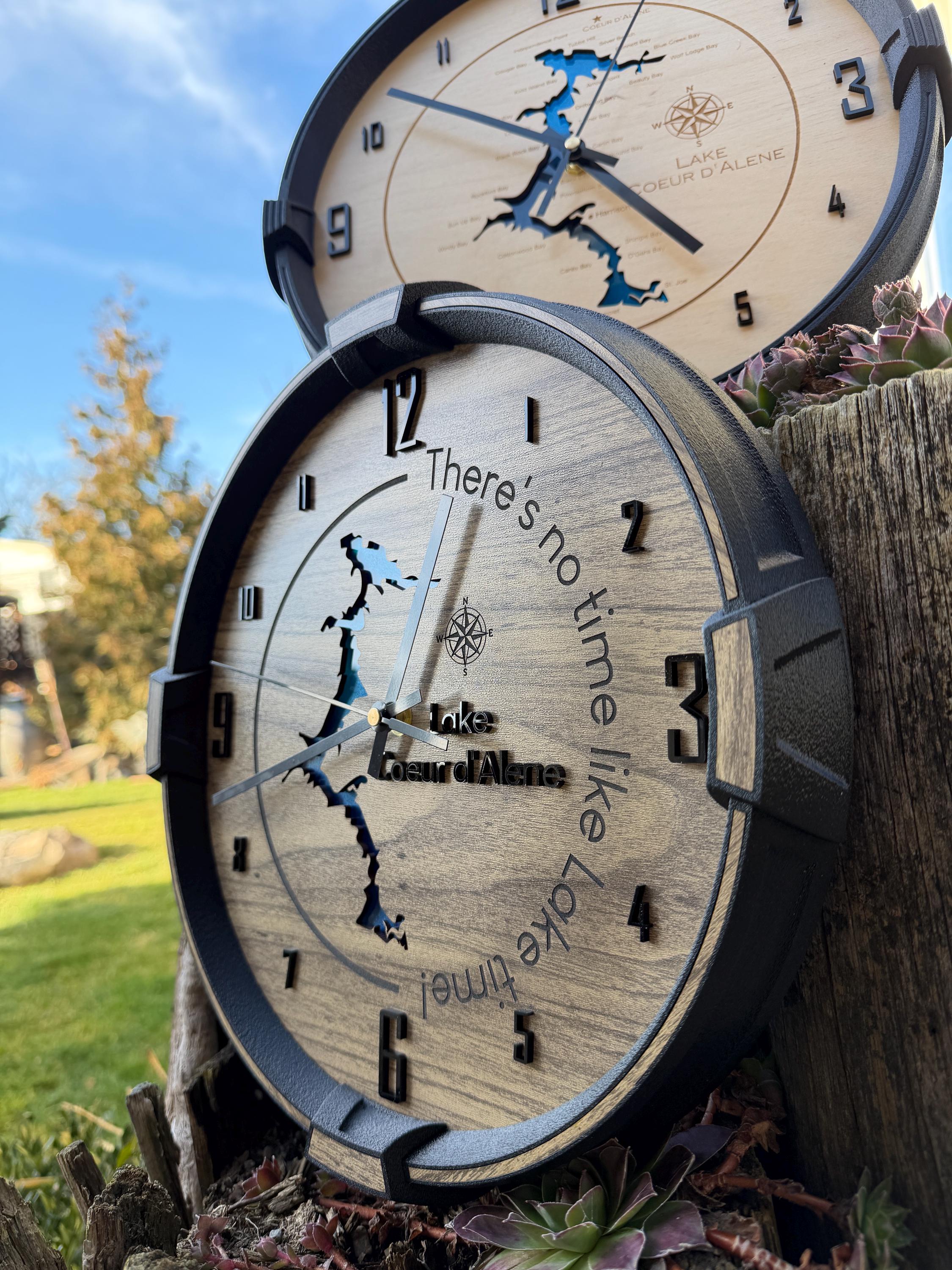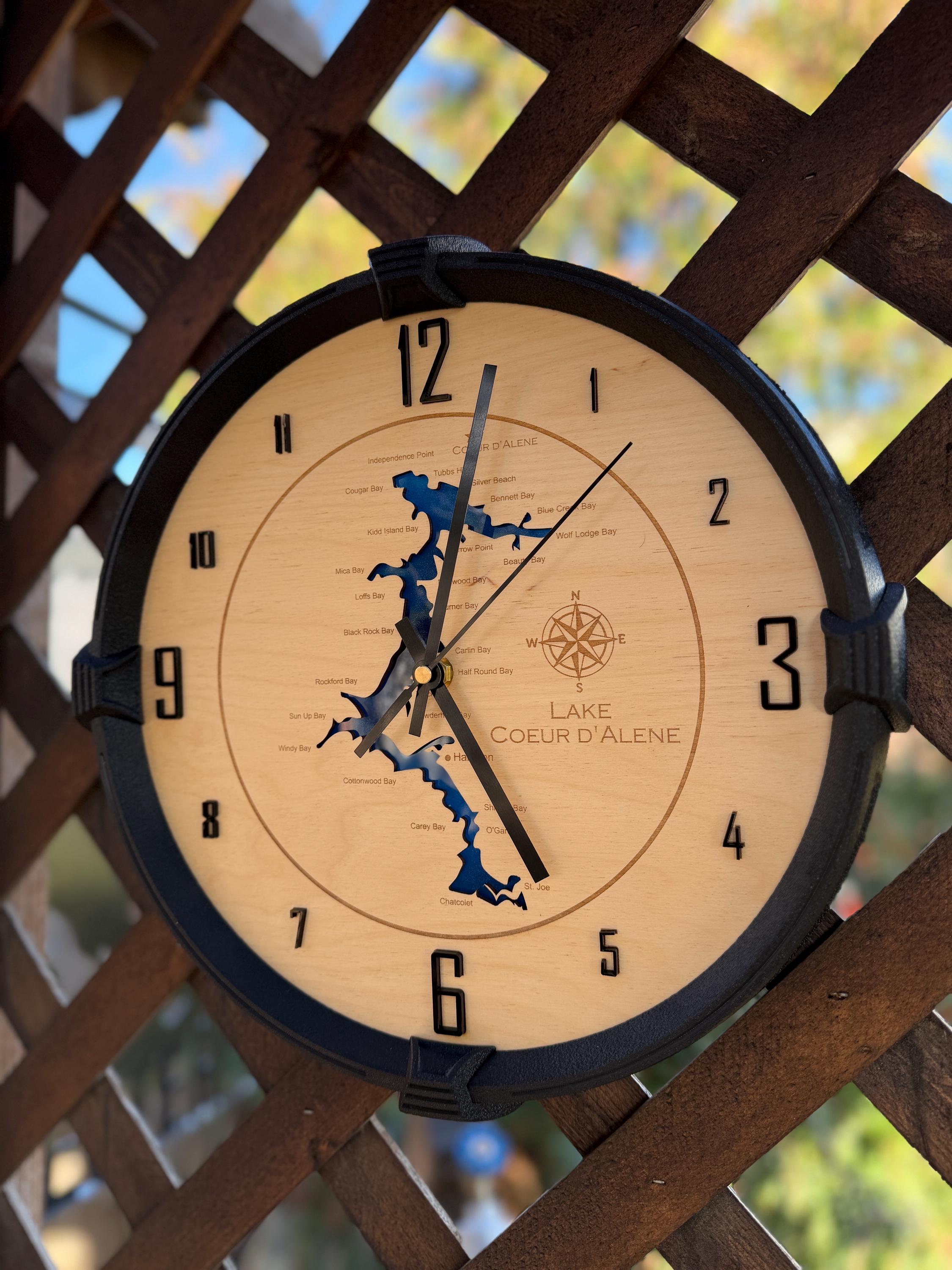 These custom wall clocks are designed and crafted in our North Idaho studio and personalized with your company logo, brand, or design. Whether you’re decorating your office, upgrading your shop wall, or gifting a client, this clock makes a bold and professional statement.